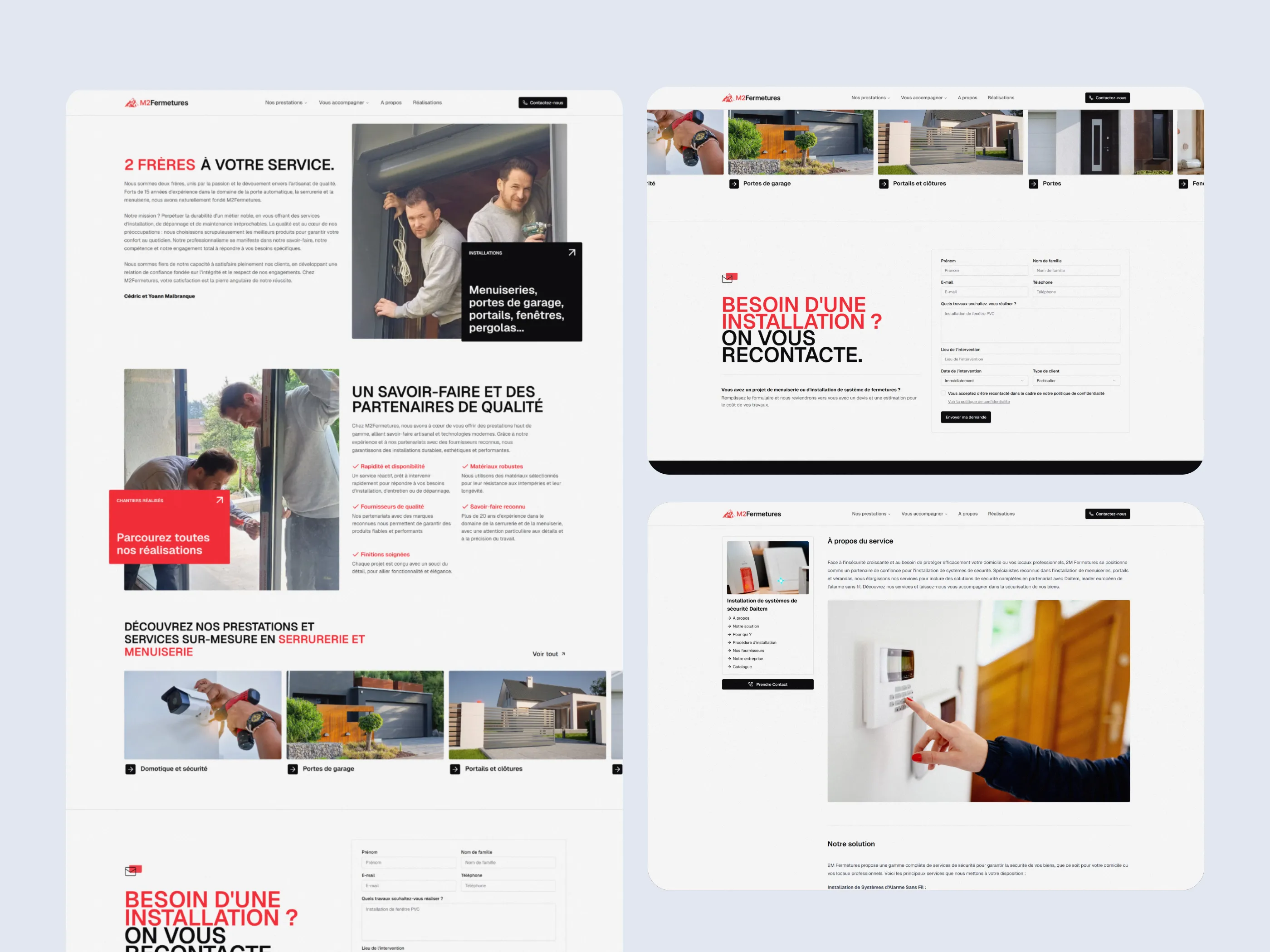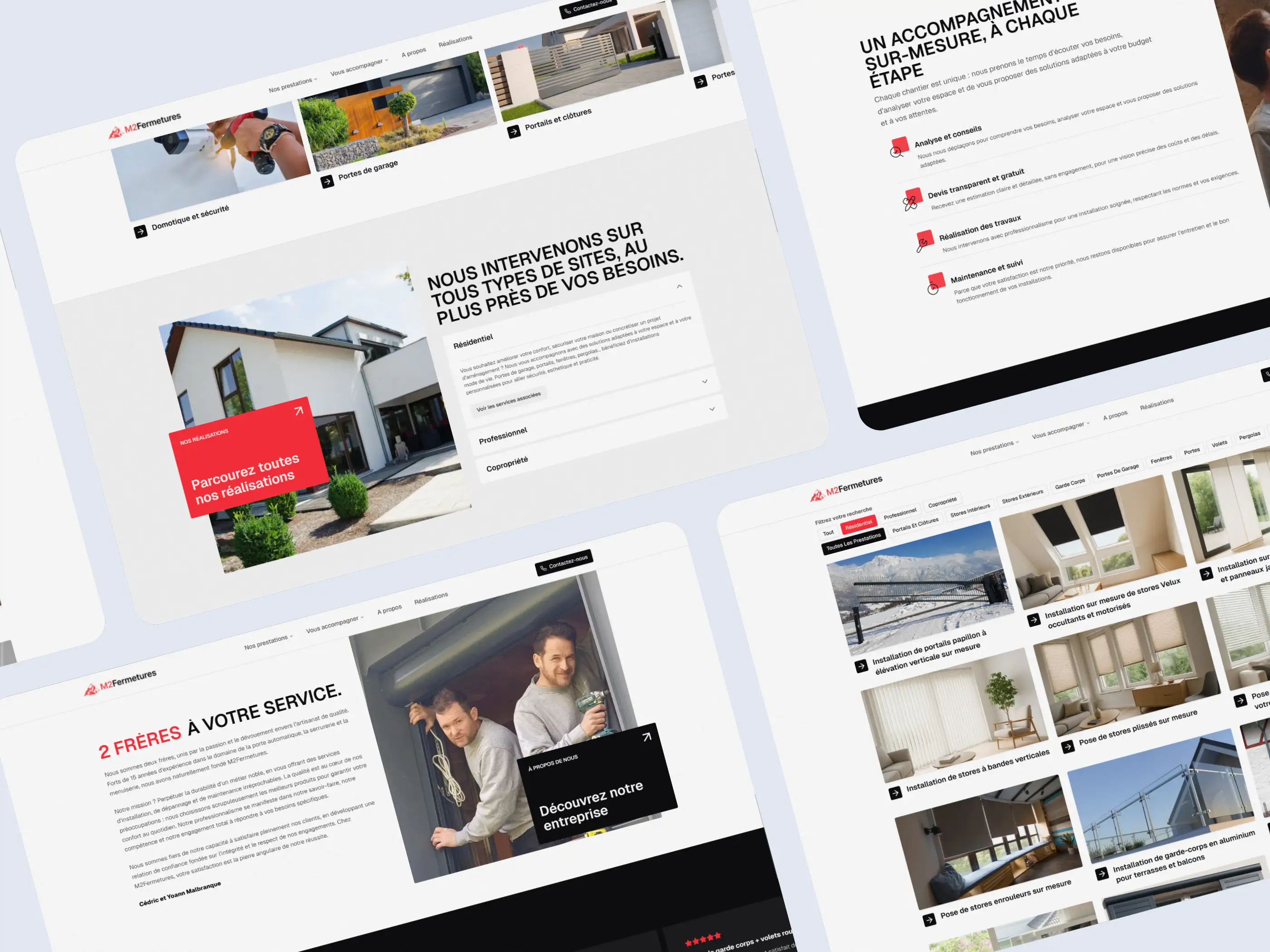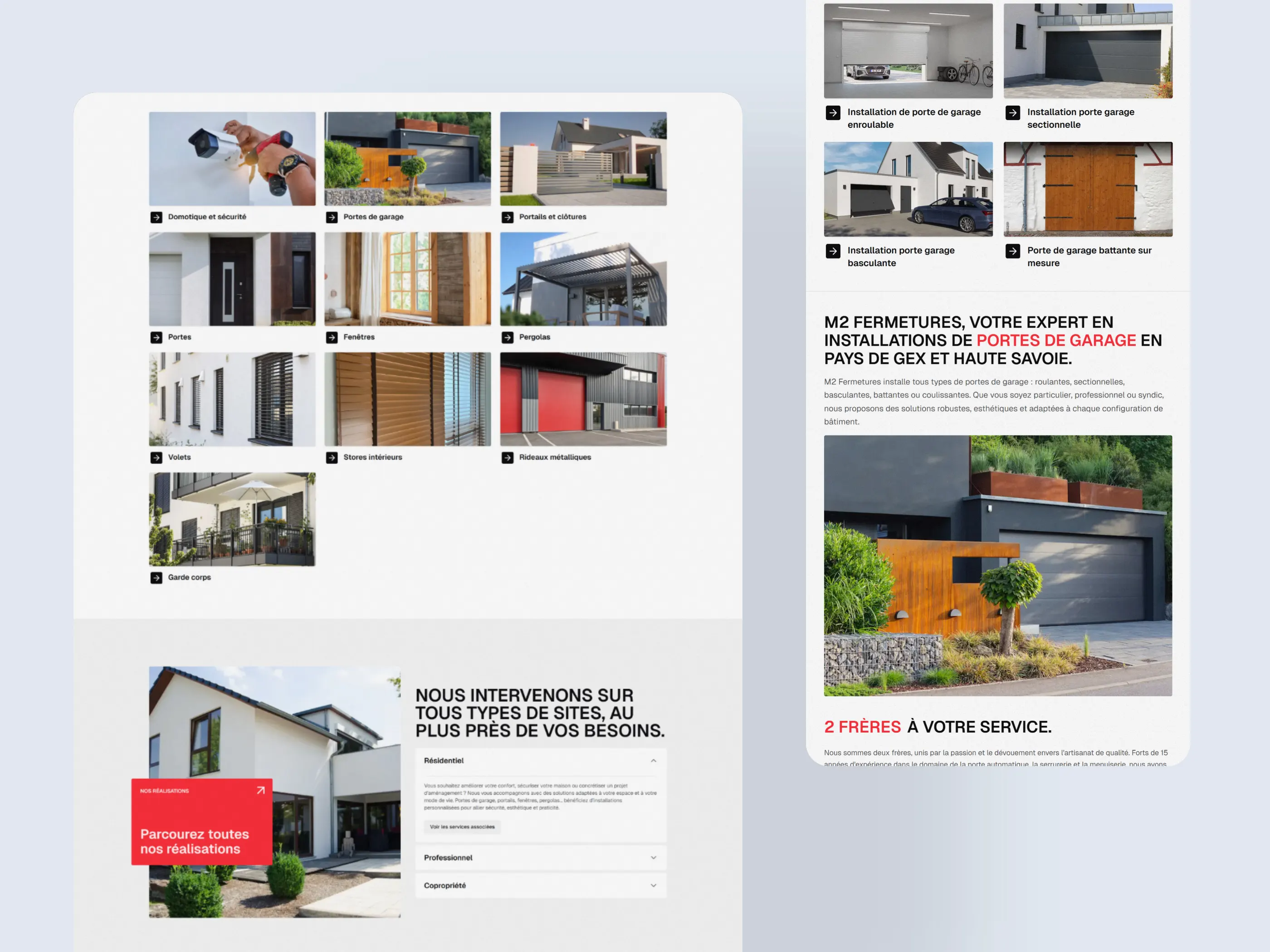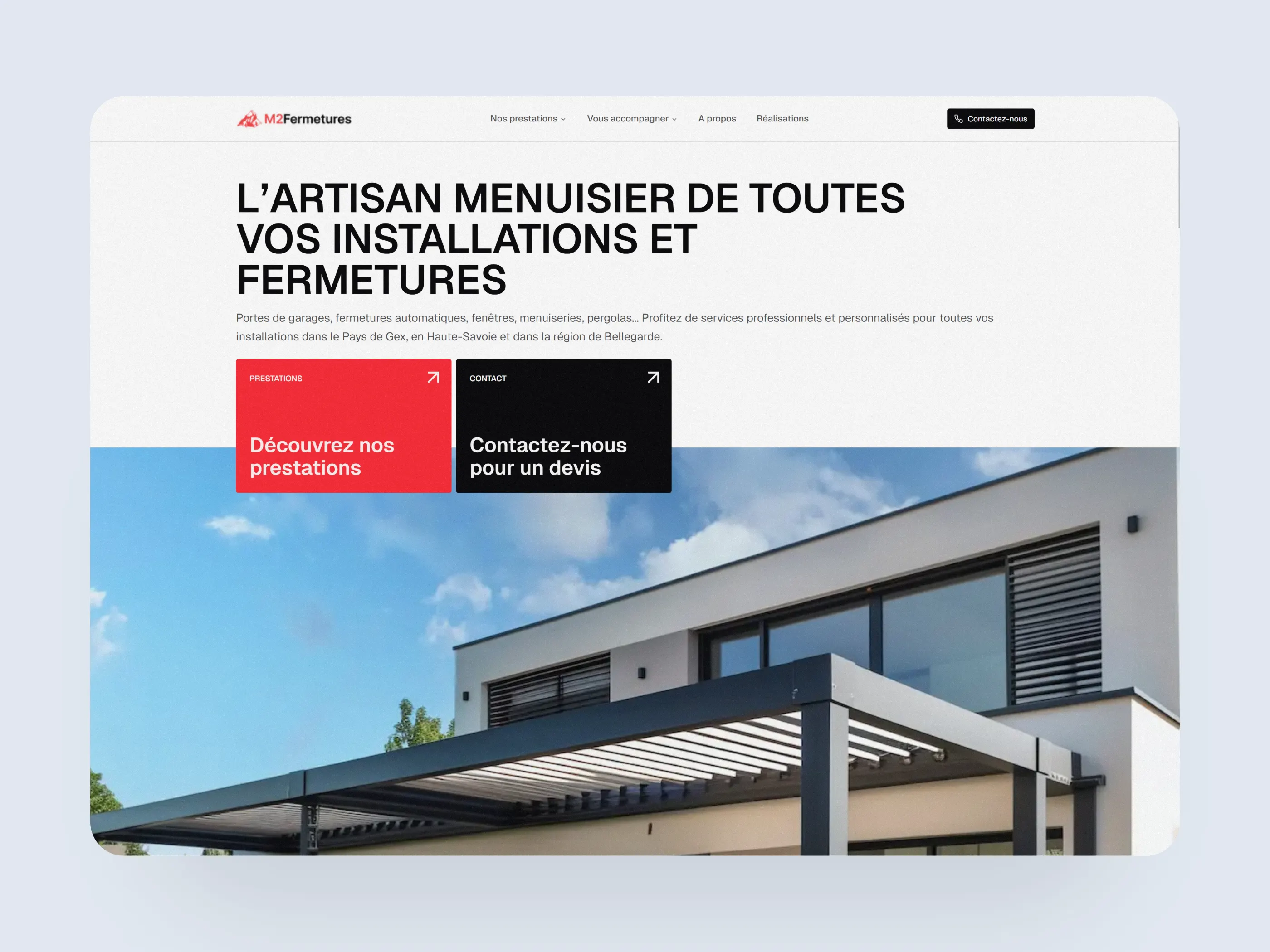2MA Fermetures (en Suisse) et M2 Fermetures (en France) sont deux entreprises familiales spécialisées dans la pose de portails, volets, fenêtres, stores et automatismes. Jusqu’à récemment, les frères Malbranque géraient deux sites distincts, sans lien entre eux — un pour la Suisse, l’autre pour la France — doublant les efforts de publication et complexifiant la gestion au quotidien.